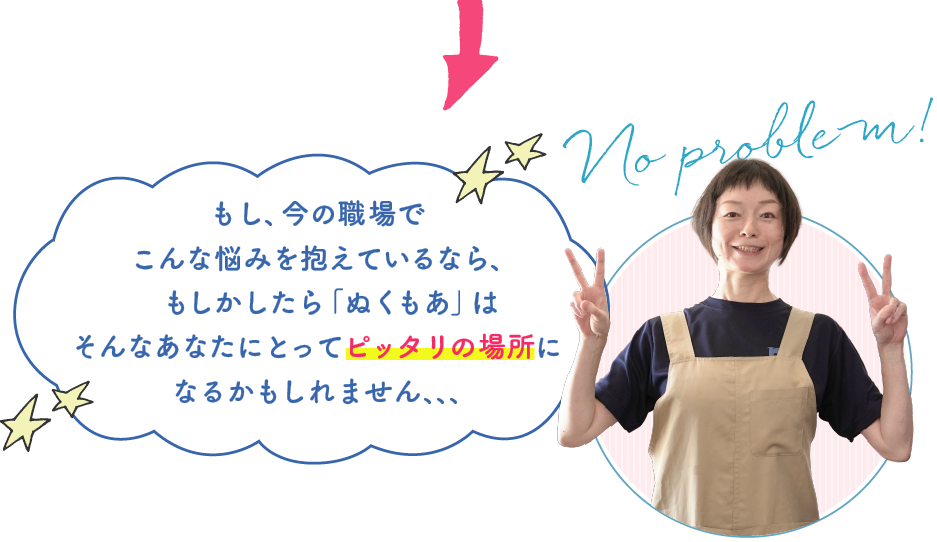 プライベートも大切にしてほしいから『しっかり働いてしっかり休む』がぬくもあのモットーです。